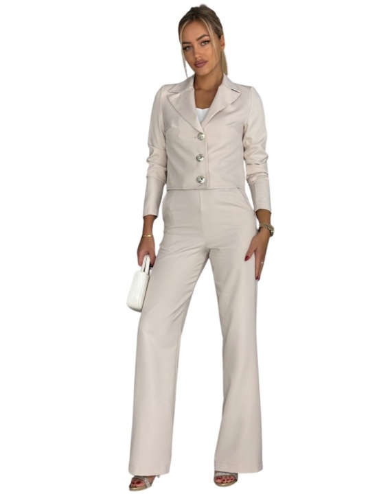 AMARYLIS – beżowy komplet garniturowy ze złotymi guzikami